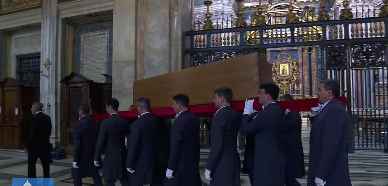 Posmrtna povorka sa kovčegom koji se nalazi u papamobilu krenula je ulicama Rima koje su pune ljude koji posljednji put pozdravljaju papu koji je bio voljen, ne samo u katoličkom svijetu, već i šire. Povorka se trenutno kreće prema Bazilici Santa Maria Mađore.